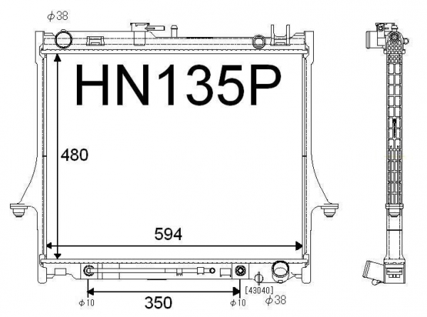 Automatic Transmission Dimensions: 480 mm - between the tanks 594 mm - wide 38 mm - top and bottom hose pipe 350 mm - between the oil cooler pipes NOTE: Contact us directly for availability