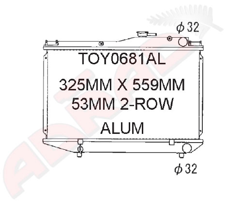 Manual Transmission Dimensions: 325 mm - between the tanks 559 mm - wide 53 mm - thickness 32 mm - top and bottom hose pipes NOTE: Please contact us directly for availability