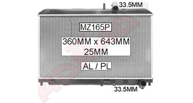 Manual Transmission Dimensions: 360 mm - between the tanks 643 mm - wide 25 mm - thickness 33.5 mm - top and bottom hose pipes NOTE: Plesae contact us directly for availability