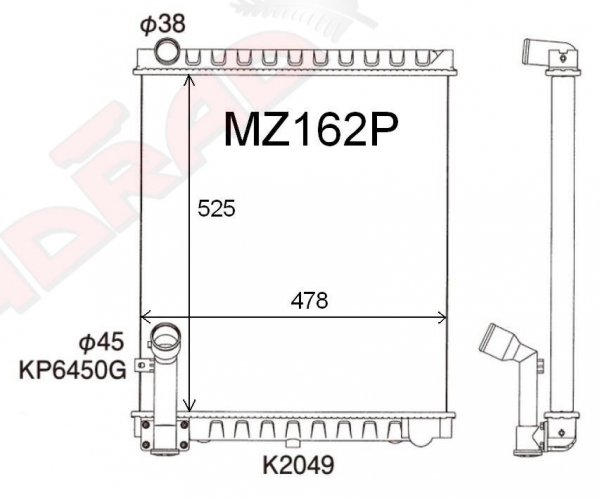 Manual Transmission Dimensions: 525 mm - between the tanks 478 mm - wide 38 mm - top hose pipe 45 mm - bottom hose pipe NOTE: Plesae contact us directly for availability